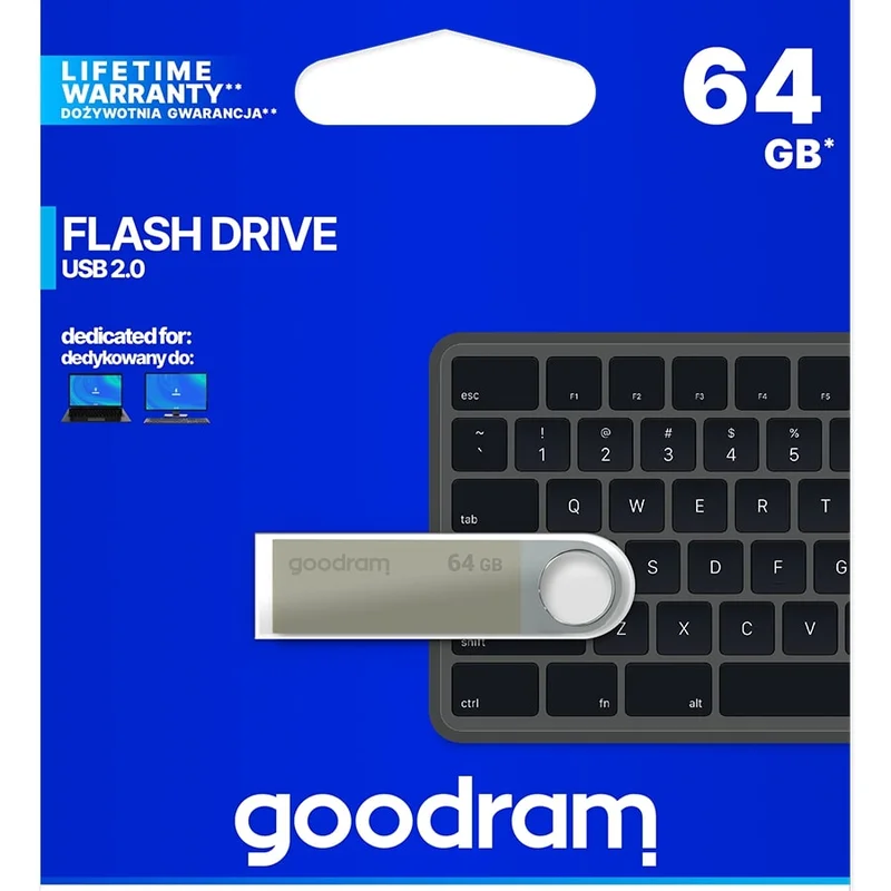 UUN2 - це сталевий, цільний, з блискучим сталевим отвором, що полегшує прикріплення носія даних до ключів, рекламних шнурків на шию або брелоків. Додатковою перевагою є відсутність ковпачка, що полегшує його використання навіть найбільш розсіяними користувачами - їм більше не потрібно турбуватися про те, щоб не втратити ковпачок! Біжутерія щодня GOODRAM UUN2 відрізняється біжутерійним видом і ідеально підходить для людей, які цінують оригінальний дизайн. Проста форма USB з блискучим отвором користується популярністю у багатьох користувачів. Срібний, сталевий корпус, а також відсутність ковпачка гарантують безпечне використання носія даних у будь-якій ситуації. Підвищена міцність завдяки сталевому корпусу Витончений з вигляду, проте надзвичайно міцний GOODRAM UUN2 користується популярністю як у чоловіків, так і у жінок. Сталевий, міцний корпус GOODRAM UUN2 відрізняється оригінальним і сучасним дизайном, а також забезпечує велику стійкість до пошкоджень і захищає дані, що зберігаються на носії. Відсутність ковпачка дозволяє Вам весь час насолоджуватися видом і функціональністю пам"яті. Міцність для активних У пам"яті GOODRAM UUN2 використана технологія COB (Chip On Board) - кремнієві чіпи систем пам"яті і контролер встановлені на загальній друкованій платі, після чого вся система залита спеціальною смолою. Завдяки цьому, крім невеликих розмірів і ваги, пам"ять набула додаткових важливих переваг: водонепроникність і ударостійкість, які забезпечують ще більший комфорт для користувача. В силу цього даний USB-флеш-накопичувач рекомендується всім активним людям, які цінують як практичні переваги носіїв даних, так і їх зовнішній вигляд. Завжди з Вами Продуманий дизайн GOODRAM UUN2 дозволяє використовувати цей USB-флеш-накопичувач як брелок для ключів, а спеціальної форми отвір дозволяє легко прикріпити його до шнурка. Завдяки цьому Ви можете швидко поділитися з близькими фотографіями, улюбленими фільмами або музикою, а важливі документи або презентації Ви завжди будете мати при собі.