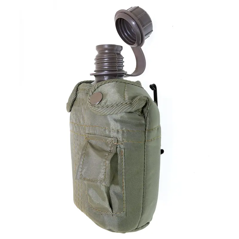 Пластиковая фляга с чехлом на 1 литр (американского образца). Материал изготовления - специальный пищевой пластик, который рассчитан на хранение и переноску воды. Фляга снабжена завинчивающейся крышкой соединенной с флягой пластиковым переходником. Чехол нейлоновый и обладает термо- изолирующими свойствами (за счет подкладки из искусственного меха). С внешней стороны - не большой кармашек для обеззараживающих таблеток. Дренажное отверстие. Два крепёжных зажима для крепления на пояс, поясной ремень или рюкзак Обьём:1 литр Цвет чехла:Олива Система крепления:ALICE Материал чехла:100% полиэстер