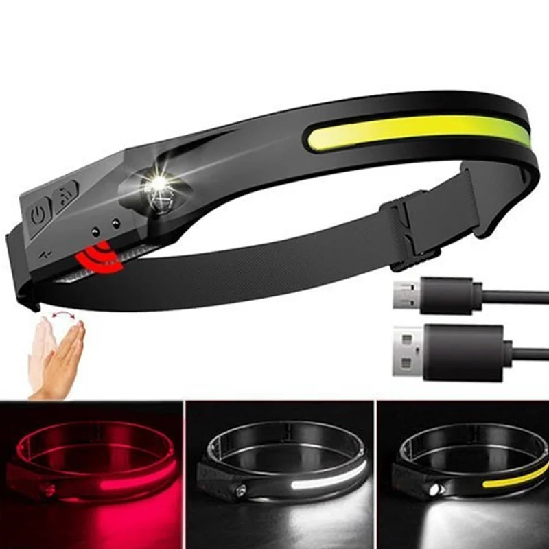 Фонарь налобный BL-W689/G28-LM+COB (white+red), сенсорный, Li-ion аккумулятор, ЗУ USB