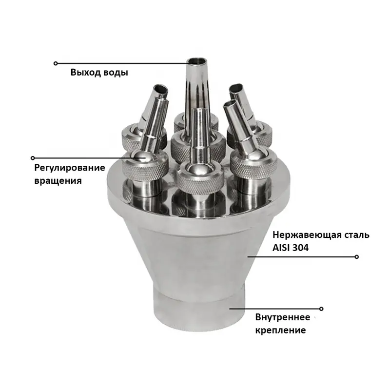 Форсунка Aquaviva CBS65 Квітка - це ідеальний варіант для створення водного струменя у формі квітки. Застосовується для створення різних водних композицій у фонтані. Складається з двох рівнів, та має можливість регулювання кута нахилу струменя до 30°. Форсунка виконана з нержавіючої сталі AISI 304, стійкої до корозії, впливу ультрафіолету та хімічних реагентів.