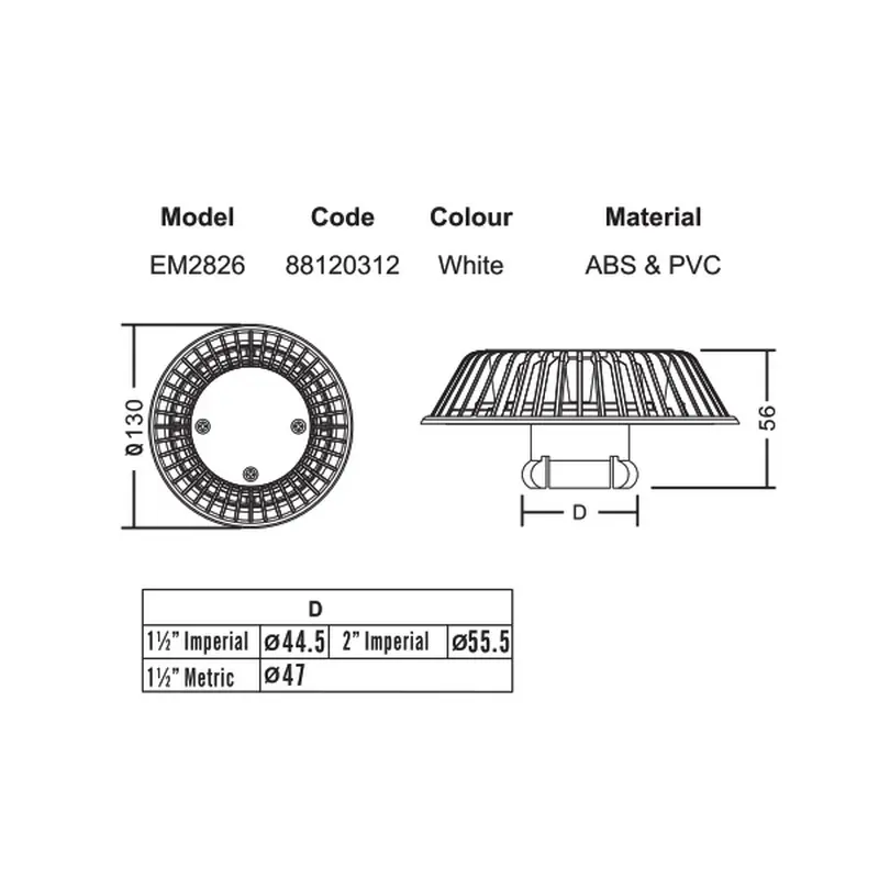 Форсунка усмоктувальна Emaux EM2826 для переливу 50 мм