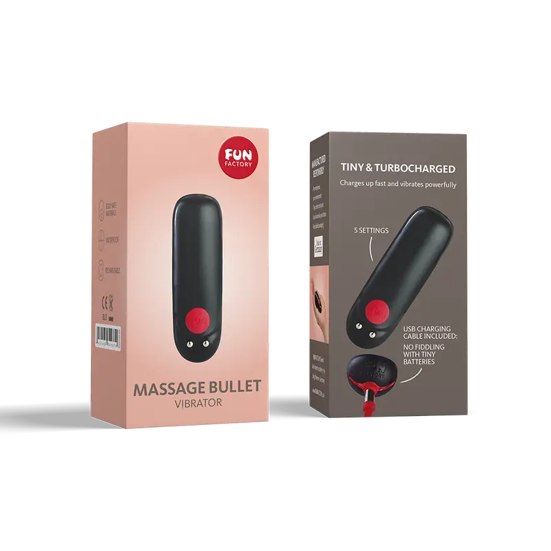 Fun Factory Massage Bullet, достаточно компактная, чтобы поместиться в сумочке или кармане, и достаточно мощная, чтобы вызвать дрожь в коленках. Маленький вибратор, представляет собой перезаряжаемую вибропулю с пятью интенсивными настройками и станет вашим любимым ненавязчивым и удивительным дополнением к сексу с партнером, или двигателем, чтобы запустить ваш любимый фаллоимитатор или универсальным средством погрузиться в потрясающую вибрацию.