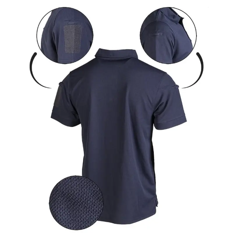100% полиэстер рубашка-поло спортивного кроя быстросохнущая воздухопроницаемая с липучкой на плече для прикрепления заплат небольшие карманы на плече с пуговицей