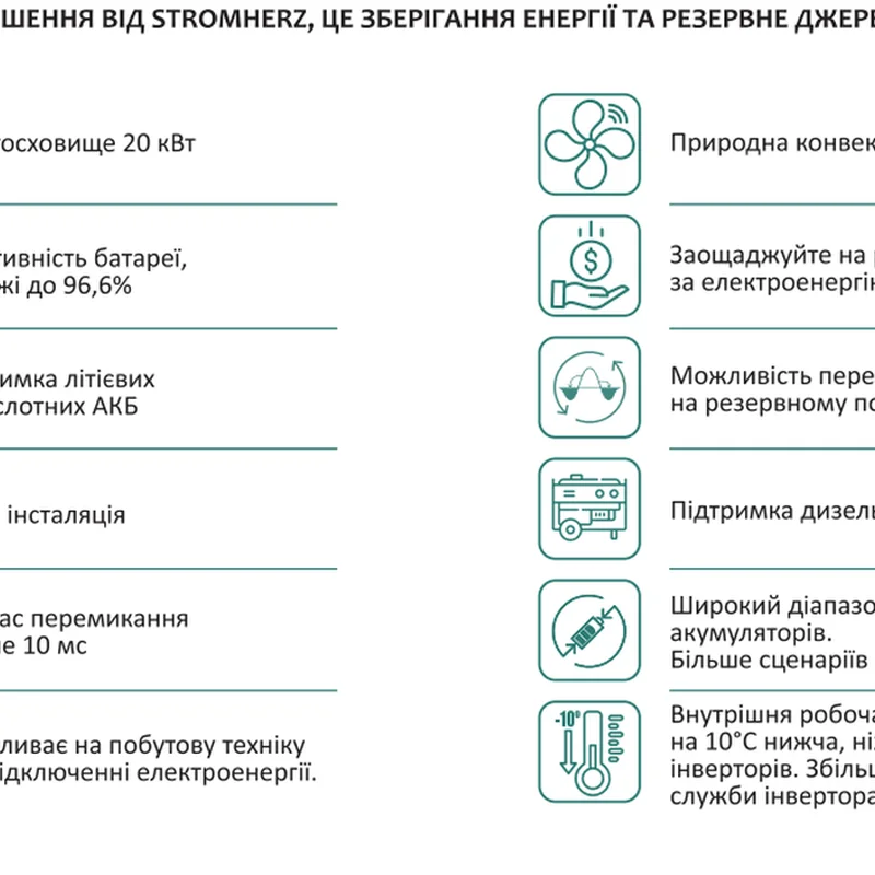 Stromherz – компанія є одним із небагатьох виробників, які інвестують у фундаментальні дослідження пристроїв на сонячних батареях. Виробник пристроїв TM Stromherz, заснований у 1993 році командою досвідчених інженерів-фахівців у Вельсі, Австрія, спеціалізується на фундаментальних дослідженнях технології акумуляторів LFP (літій-залізо-фосфат) та на розробці ESS (систем зберігання енергії). Акумулятори LFP (літій-залізо-фосфатні акумулятори) відомі терміном служби понад 10 000 циклів при глибині розряду 90% та гарантією якості 10 років.Гібридні низьковольтні інвертори від провідного австрійського виробника Stromherz це інтелектуальні гібридні системи збереження енергії, які перетворюють енергію сонця в акумулятори на цілодобовий ресурс, одночасно пропонуючи резервне живлення у разі збою в електромережі. Stromherz зберігає, знижує витрати на енергію, покращує стійкість мережі. Інвертори є найкращою пропозицією на ринку за співвідношенням ціна-якість.Гібридний низьковольтний однофазний інвертор Stromherz S-10K-1P LV-UA ідеально підійде для приватного будинку, таунхаусу або для квартири. Станцію можна налаштувати таким чином, щоб максимально економити на рахунках: система може накопичувати енергію в акумулятори в час, коли тариф найнижчий, а віддавати навпаки — коли тариф найдорожчий. ХАРАКТЕРИСТИКИ ІНВЕРТОРА STROMHERZ S-10K-1P LV-UA :Гібридний однофазний інвертор Stromherz S-10K-1P LV-UA (10 кВт, 1 фаза, 2 МРРТ) – високоефективний та надійний мережевий інвертор із вбудованою функцією обмеження з генерацією в мережу.Система моніторингу дозволяє стежити за роботою станції з будь-якого місця за допомогою мобільного додатку Stromherz Home. Ідеальне рішення для зменшення рахунків за електрику з високим гарантійним терміном служби.Гібридний інвертор Stromherz S-10K-1P LV-UA може перетворювати постійний струм (DC) від фотоелектричної системи на даху на змінний струм (AC) і тому може використовуватися безпосередньо в побутових цілях.[caption id="attachment_1125821243" align="alignnone" width="233"] Офіційний сайт виробника Stromherz.[/caption]