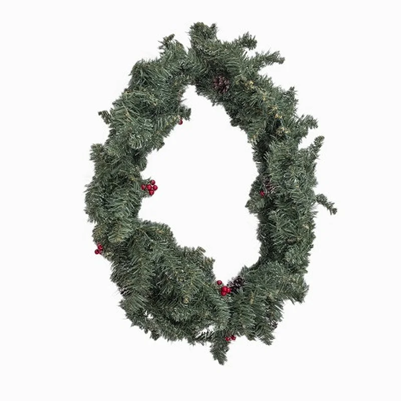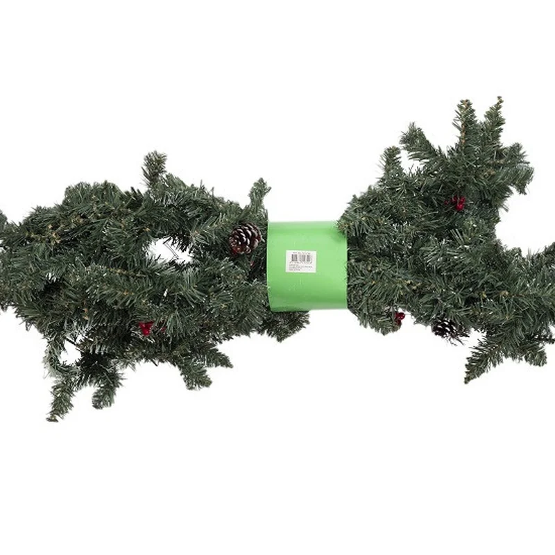 Гірлянда 180 см. декоративна Creston Frosted зелена з шишками та ягодами