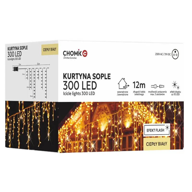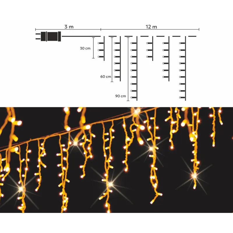 Гірлянда електрична Chomik "Бахрома", 300 LED, 12м, теплий білий, від мережі