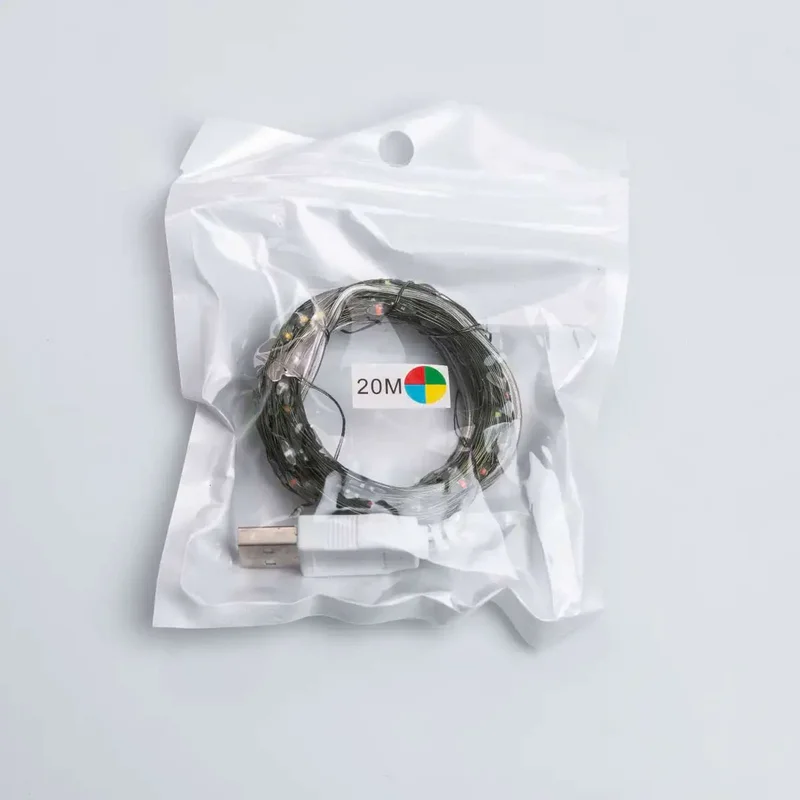 Гірлянда роса 20 метрів USB на 200 led світлодіодів крапля на зеленому дроті мультиколор