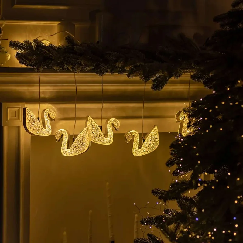 Гірлянда штора з фігурками Сваровскі 3 метри 6 ламп тепле жовте світло