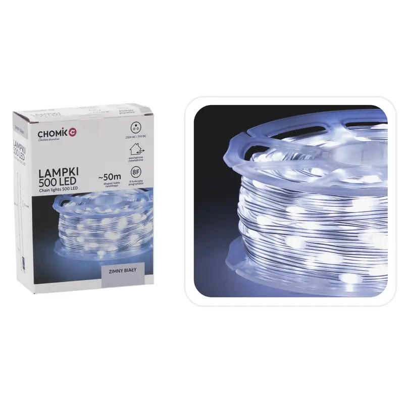 Гірлянда-струна на котушці Chomik, 49,9+3 м, 500 LED холодний білий