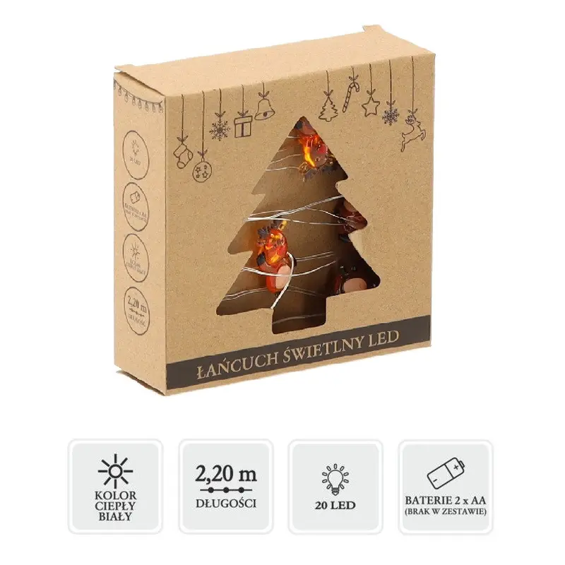 Гірлянда-струна "Олень" польського бренду Chomik із теплим білим кольором світіння буде цікавим акцентом на вашому новорічному дереві або як доповнюючий елемент декорування інтер'єру. Відрізняється м'яким статичним світлом, надійністю та довговічністю. Тендітні помаранчево-коричневі фігурки у вигляді святкових оленів додають виробу особливої казковості та урочистості. Оскільки джерелом живлення є батарейки, гірлянда з милими оленятами з легкістю знайде своє місце у межах ваших креативних рішень зі створення затишної різдвяної атмосфери.Новорічна гірлянда - це не тільки класична ялинкова прикраса, а в першу чергу чарівна гра яскравих LED вогників, які подарують вам святковий настрій, тепло, затишок, приємні емоції, наповнивши інтер'єр світлом і атмосферою казкового Нового року.