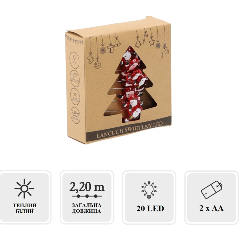 Гірлянда-струна "Санта", "Chomik", 2,2 м, 20 LED теплий білий