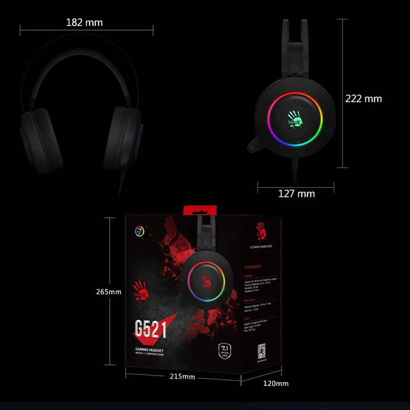 Мікрофон з функцією шумозаглушення Високий рівень шумозаглушення і підвищена чутливість мікрофона, забезпечують спілкування з іншими гравцями з кришталевою ясністю. Багатобарвне кругове підсвічування Яскраве мерехтливе підсвічування підкреслює атмосферу гри. Легка конструкція Гарнітура спеціально розроблена таким чином, щоб запобігти головному болю при тривалому носінні. Легка конструкція зі зручним оголів'ям забезпечує комфорт протягом всього дня. Гарнітури Bloody виготовлені з високоякісних матеріалів, які забезпечують максимальний комфорт навіть після тривалого використання. Bloody ніколи не йде на компроміс з точки зору якості і комфорту. А завдяки елегантному дизайну навіть найвибагливіші гравці будуть в захваті. Навушники усувають всі шуми і забезпечують комфорт під час довгих годин прослуховування.
