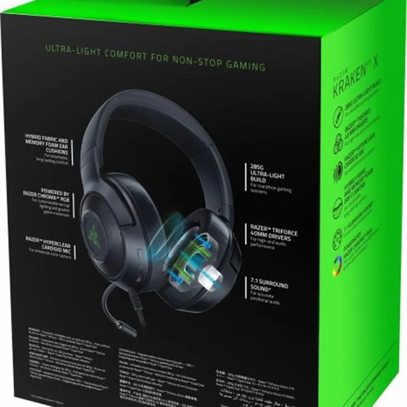 Відчуйте повне занурення у гру, не відчуваючи ваги – представляємо Razer Kraken V3 X, ігрову usb-гарнітуру для пк, яка дозволяє грати довше, довше та довше. з оновленими запатентованими динаміками Razer Triforce для неймовірно реалістичного звуку, настав час втратити себе, насолоджуючись завжди переможним звуком. Ультралегкий комфорт Полегшена конструкція цієї ігрової гарнітури для пк, вага якої вже становить лише 285 г, доповнюється трьома елементами дизайну, завдяки яким здається, що вона важить ще менше. Амбушюри з гібридної тканини та піни з пам'яттю М'які, дихаючі, амбушюри, що амортизуються, забезпечують максимальний комфорт вашим вухам під час тривалих ігрових марафонів. М'яке та амортизуюче оббивання оголов'я Подушка оголов'я знімає тиск на голову при тривалому носінні гарнітури. 40 мм динаміки Razer Triforce Почуйте, як ваша гра справді оживає завдяки високоякісному чистому звуку. Насолоджуйтесь більш багатими високими частотами, яскравішим звуком та потужнішими басами за допомогою наших запатентованих 3-х компонентних аудіо динаміків, які фокусуються окремо на високих, середніх та низьких звукових частотах. Віртуальний об'ємний звук 7.1 Підсилюйте своє занурення в гру і не дозволяйте нічого вислизнути від вух за допомогою точно спозиційованого звуку, що дозволяє легко розрізняти напрямок, звідки виходить кожен звук. Кардіоїдний мікрофон Razer Hyperclear Гнучкий мікрофон ігрової гарнітури Razer Kraken V3 X забезпечує покращену чіткість та природне відтворення вашого голосу, завдяки більш якісному вловлюванню мови та шумоподавленню. Підтримка Razer Chroma Rgb З 16,8 мільйонами кольорів, незліченними візерунками, динамічними внутрішньоігровими світловими ефектами – випробувайте повне налаштування rgb і глибше занурення в ігри з найбільшою у світі екосистемою підсвічування для ігрових пристроїв. Підтримка постійно зростаючого списку з тисяч пристроїв, сотень ігор та програм. Перейдіть на новий рівень за допомогою додаткових функцій, таких як Chroma studio, visualizer, connect та workshop. Зручне керування звуком Легко настройте та перемикайте налаштування за допомогою кнопки вимкнення мікрофона та колеса гучності, розташованої на лівій чашці навушника.