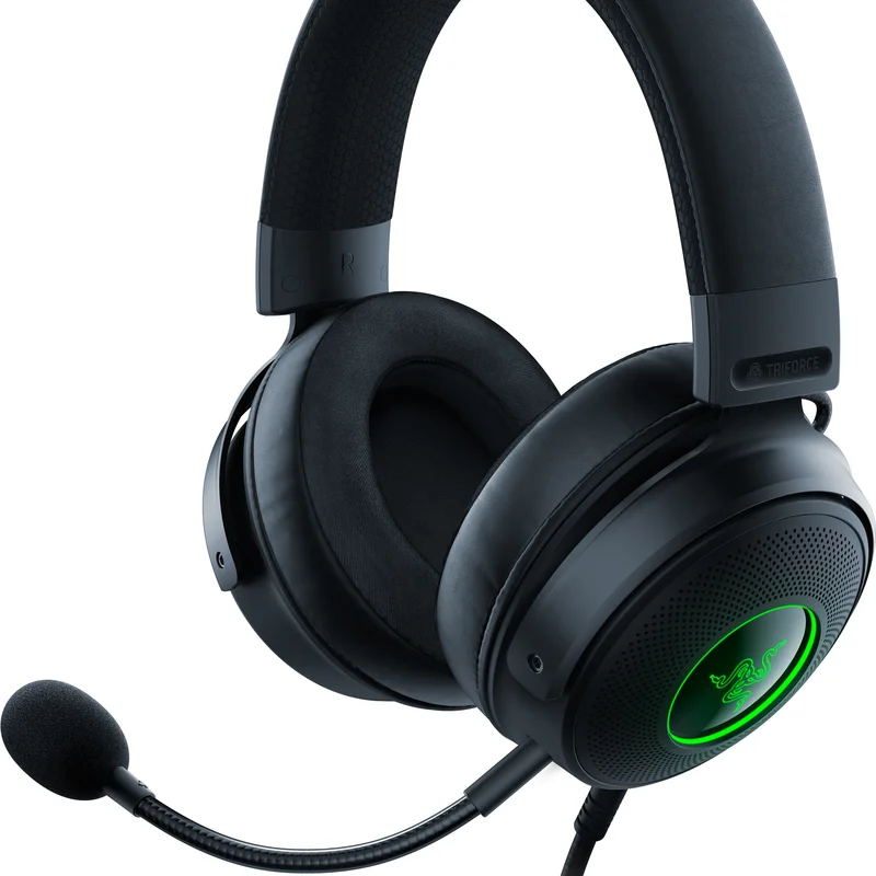 Дротова ігрова USB-гарнітура з RGB-підсвіткою Дротова ігрова USB-гарнітура з підсвіткою Razer Chroma RG Розфарбуйте своє занурення з Razer Kraken V3 — ігровою комп'ютерною гарнітурою з підсвіткою Razer Chroma RGB для створення динамічних світлових ефектів в іграх та на пристроях. Ця гарнітура, яка зачарує вас своїм виглядом і звучанням, має покращені випромінювачі й технологію об'ємного звуку для створення реалістичного звучання. THX Spatial Audio Для реалістичного позиційного звуку Завдяки нашому покращеному об'ємному звуку 7.1 ви зможете насолоджуватися реалістичною акустикою, яка оптимізує звукову картину гри в такий спосіб, щоб перенести вас прямо в центр дії. Титанові випромінювачі Razer TriForce діаметром 50 мм Для потужного та реалістичного звучання Наша запатентована конструкція випромінювача із трьох компонентів відтворює надзвичайно чіткі високі, середні та низькі частоти, забезпечуючи динамічніше звучання для глибшого занурення. Амбушури з піноматеріалу FlowKnit з ефектом пам'яті Для легкості та зручності використання упродовж усього дня М'яка та щільна піна неабияк знижує тиск гарнітури на голову та вуха, забезпечуючи зручну посадку, а повітропроникна тканина амбушурів зменшує потовиділення й нагрівання, даючи змогу використовувати гарнітуру з комфортом упродовж багатьох годин. Знімний кардіоїдний мікрофон Razer HyperClear Для кришталево чіткого передавання голосу, коли це потрібно Мікрофон, точно настроєний для заглушення фонового шуму, краще захоплює голос під час гри. Завдяки йому вас чутимуть голосно та виразно. На основі Razer Chroma RGB Для розширення можливостей індивідуального настроювання Завдяки доступу до палітри в 16,8 млн кольорів і набору ефектів підсвітки ви зможете настроїти підсвітку в бажаний спосіб і насолоджуватися органічною роботою підсвітки в понад 150 іграх із підтримкою 500 пристроїв від понад 50 виробників.
