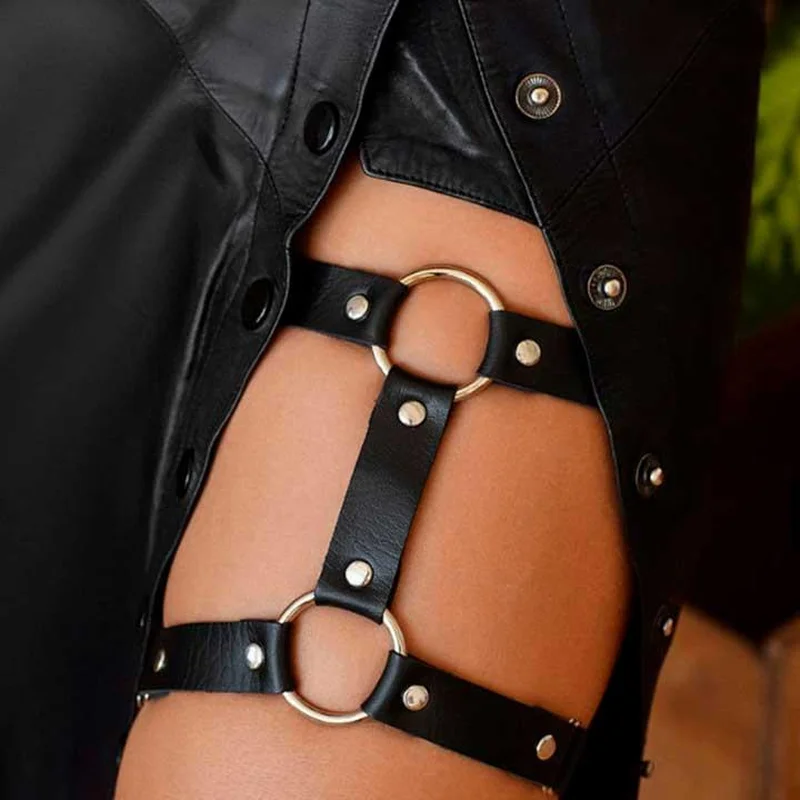 Цей гартер може стати яскравим акцентом у вашому вбранні і повністю вписатися в образ. Як би Ви його не використали, він приверне увагу оточуючих. Каблучки з металевими деталями мають стильний і незвичайний вигляд. Діаметр підв'язки можна легко відрегулювати за допомогою бігунків на гумках. Розмір універсальний.Матеріал: екошкіра, біжутерний сплавДіаметр: 30-55 смШирина: 2 см