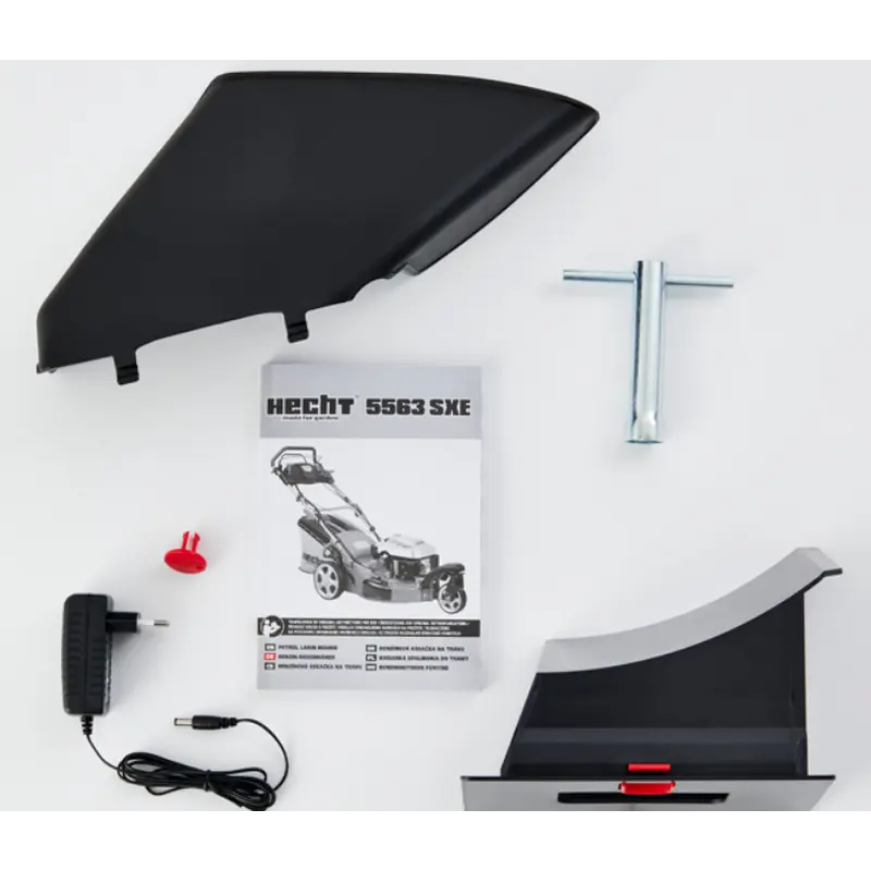 Бензинова газонокосарка HECHT 5563 SXE 5 в 1 — це добре обладнана машина, розроблена в основному для нерівних площ із великою кількістю перешкод. Переднє колесо дозволяє легко керувати та об'їжджати перешкоди, такі як різні клумби, кущі, архітектурні елементи тощо. Якісний бензиновий двигун HECHT OHV об'ємом 173 куб, який оснащений електричним стартером, що робить косарку придатною навіть для людей похилого віку та жінок. Електростартер живиться від акумулятора 12 В, який знаходиться в панелі на ручці косарки. Запуск здійснюється за допомогою кнопки на ручці. На відміну від 3-колісних колясок, які можуть бути нестійкими через високий центр ваги, газонокосарка в цій версії дуже стійка. Скошена трава збирається в текстильний кошик на 60 л, який оснащений аеродинамічним клапаном для легкої перевірки стану його наповнення.  Висота підйому від 25 до 75 мм.