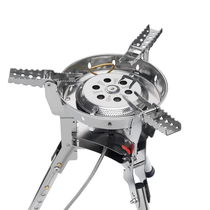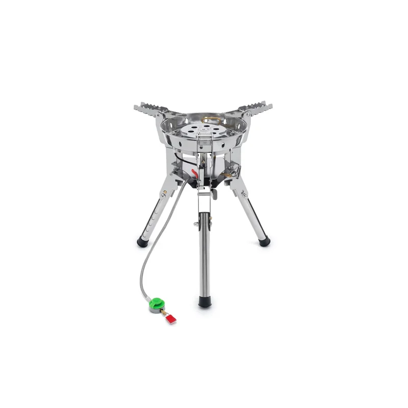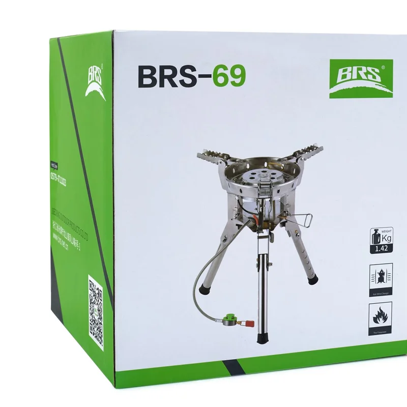 Газовий пальник BRS-69 — це втілення потужності та портативності, актуальне для розігріву напівфабрикатів та приготування страв з нуля у польових умовах. Потужність моделі досягає 4360 В, що дозволяє швидко закип'ятити воду, зварити суп і посмажити м'ясо або овочі. Великий діаметр пальника (304 міліметри) у поєднанні з подвійними складаними стійками з безліччю дрібних зубчиків дозволяє мінімізувати ковзання встановленого посуду незалежно від його розміру, чи то компактний похідний чайник або об'ємний котел.
