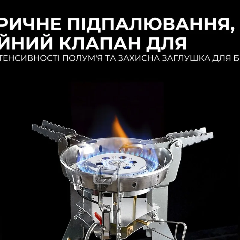В якості палива можна використовувати скраплений газ, пропан та бутан. Витрата палива становить 315 г/год. Газовий балон кріпиться до пальника догори дном, що забезпечує підвищену потужність та стабільніше горіння. Модель активується за допомогою електричного запалювання, що прискорює даний процес і позбавляє користувача необхідності прямого контакту з джерелом вогню. Інтенсивність полум'я можна контролювати за допомогою подвійного клапана, а універсальне різьбове з'єднання доповнено захисною заглушкою, яка запобігає попаданню всередину вологи та засмічень.