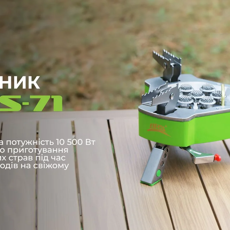 Якщо у планах активний відпочинок великою компанією або сімейний пікнік, пальник BRS-71 стане ефективним помічником у кулінарних експериментах на свіжому повітрі. Потужність моделі дорівнює 10500 Вт, що в кілька разів перевищує можливості звичайних пальників, а функція регулювання інтенсивності горіння дозволяє коригувати потужність, щоб швидко посмажити м'ясо та овочі або навпаки — встановити малий вогонь для повільного тушкування.