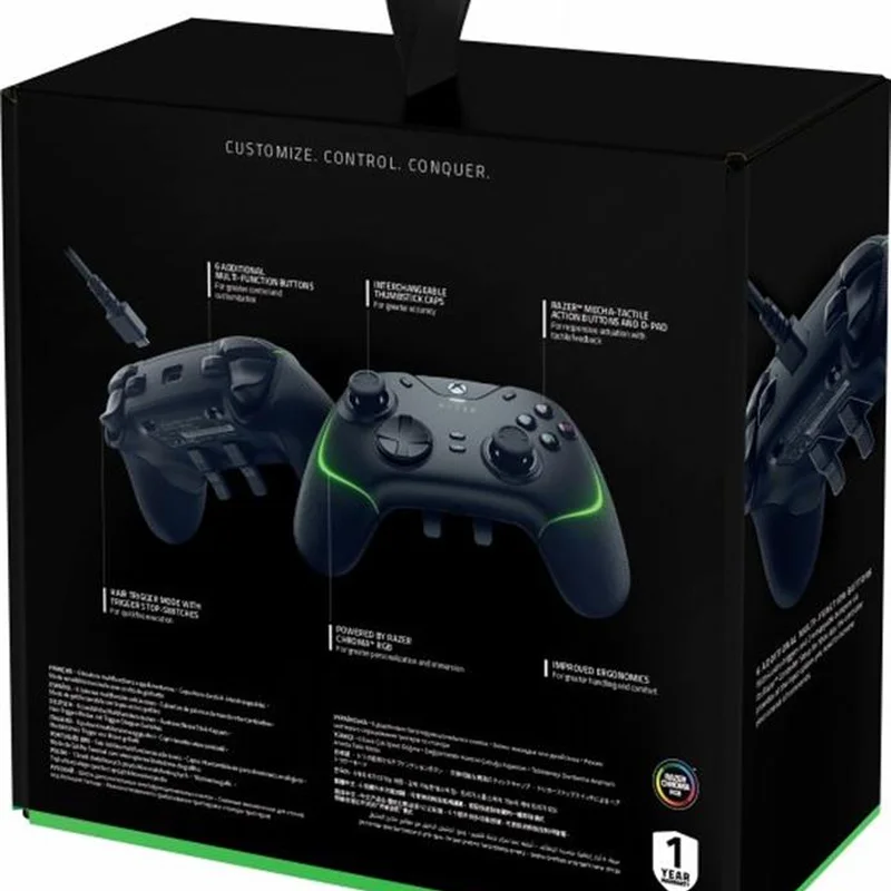 Налаштовуй. Контролюй. Впокорюй. Яка радість від перемоги, якщо ти не можеш зробити це по-своєму? З Razer Wolverine V2 Chroma вже зараз можна вибирати налаштування нового покоління. Озброївшись додатковими кнопками, що можна переназначати, підсвіткою Razer Chroma RGB, змінними джойстиками і багатьом іншим, у вас завжди будуть широкі можливості для вибору, коли справа доходить до змагань. Механіко-тактильні кнопки Razer і D-PAD Технологія, подібна до тієї, що застосовується в ігрових мишах Razer, забезпечує надчутливе спрацьовування з м’яким дотиком, механічні тактильні кнопки Razer і D-Pad роблять кожен ваш рух надточним з чітким тактильним зворотнім зв’язком, забезпечуючи конкурентну перевагу. Ресурс кожної кнопки становить до 3 мільйонів натискань для більшої надійності, зменшена відстань спрацьовування на 0.65 мм — на 35% менше, ніж у звичайного мембранного контролера — кожна кнопка тонко налаштована для більшої точності, щоб продемонструвати ваш істинний ігровий потенціал. 6 додаткових функціональних клавіш Завдяки 4 додатковим триггерам і 2 куркам, що можна налаштувати через додаток Razer Controller Setup для Xbox, контролер надає всі умови для розширення арсеналу команд. Завантажте програму Razer Controller Setup для Xbox, щоб налаштувати контролер відповідно до вашого стилю гри. Використовуйте конкурентну перевагу, перепризначайте багатофункціональні кнопки, щоб ви не відпускали пальці при виконанні важливих дій в грі. Змінні насадки на стіки Оберіть відповідний інструмент для роботи і легко замініть насадки для стіків в залежності від вашого стилю гри і ергономічних переваг. Насолоджуйтесь більш природничим і точним аналоговим рухом незалежно від того, як ви використовуєте свої джойстики. Чутливий курок Перемикання двох засувок на нижньому боці контролера значно скорочує відстань переміщення основних тригерів — перевага, що дозволяє вам швидше роздавати команди. Покращена ергономіка Модифіковані L-образні рукоятки контролера забезпечені нековзними гумовими накладками для надійного, але гнучкого хвата — природного, легкого управління для ігор протягом усього дня. Ергономічні ручки L-подібної форми забезпечують більшу підтримку рук і спрощують доступ до кнопок управління. Розширені налаштування доступні в додатку Завантажте програму Razer Controller Setup для Xbox, щоб налаштувати контролер відповідно до вашого стилю гри. Легко змінюйте налаштування кнопок, обирайте світлові ефекти, керуйте гуркотом двигуна і точними налаштуваннями чутливості.