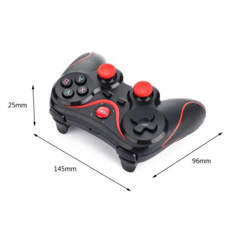 Terios X3 (S5) Bluetooth Gamepad – бездротовий геймпад для планшетів, смартфонів, Android Box, SmartTV та PC. Джойстик чудово працює з Android пристроями, які підтримують стандарт Bluetooth V3.0. Пристрій підключається через Bluetooth до пристроїв без драйверів шляхом простого сполучення. Модель зручна, економічна і приємна на дотик. Чотирнадцять зручних, чутливих клавіш керування. Вбудований акумулятор 400mAh з енергозберігаючим режимом сну, який економить витрату заряду батареї Terios T3 перетворить Ваш девайс на портативний ігровий пристрій. Режими роботи геймпада: Х – GamePad Mode, для ігор на Android та Windows PC із вбудованою підтримкою джойстика. Y – SPP Mode, для ігор на Android та iOS, які не підтримують джойстик спочатку, а також для ігор із сенсорним керуванням (цей режим повноцінно працює на пристроях з ROOT/JailBreak синхронізує кнопки на геймпаді з дією в грі за допомогою спеціалізованих програм) A – Keyboard Mode, для емуляторів на Android та Windows PC (ігри з керуванням клавіатурою) B – iCade Mode, для ігор на iOS (ігри в даному режимі підтримують лише один стик і кілька кнопок) 1. Підключення геймпада Terios без додаткових програм для Android: На джойстику вибрати один із режимів поєднанням клавіш X+HOME або A+HOME У налаштуваннях bluetooth “вибрати classic gamepad” 2. Підключення геймпада Terios для Windows - потрібен приймач Bluetooth на комп’ютері (ноутбуку) в комплект не входить : Активуємо Bluetooth на Windows На джойстику вибрати режим сполучення клавіш X+HOME Програма знайде новий пристрій, вибираємо підключитися Може запитати пароль, введіть 1234 або 0000 Характеристики: Підтримувані пристрої: Android smart phone, Android tablet, Android TV box, iPhone, iPad, PC Bluetooth 3.0 Радіус дії 8-10 м Вбудована літієва батарея: 400 mAh Час зарядки: 2 год Час безперервного використання: 20 год Колір: чорний Матеріал: пластик, гума Розміри: 14.5 см x 10 см x 4,5 см У комплекті : Геймпад microUSB для заряджання Інструкція (Англ.) Кріплення для телефону Заводська упаковка