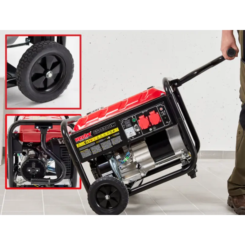 HECHT GG 3300W - це середній бензиновий електрогенератор, що працює від чотиритактного двигуна об'ємом 208 см3.