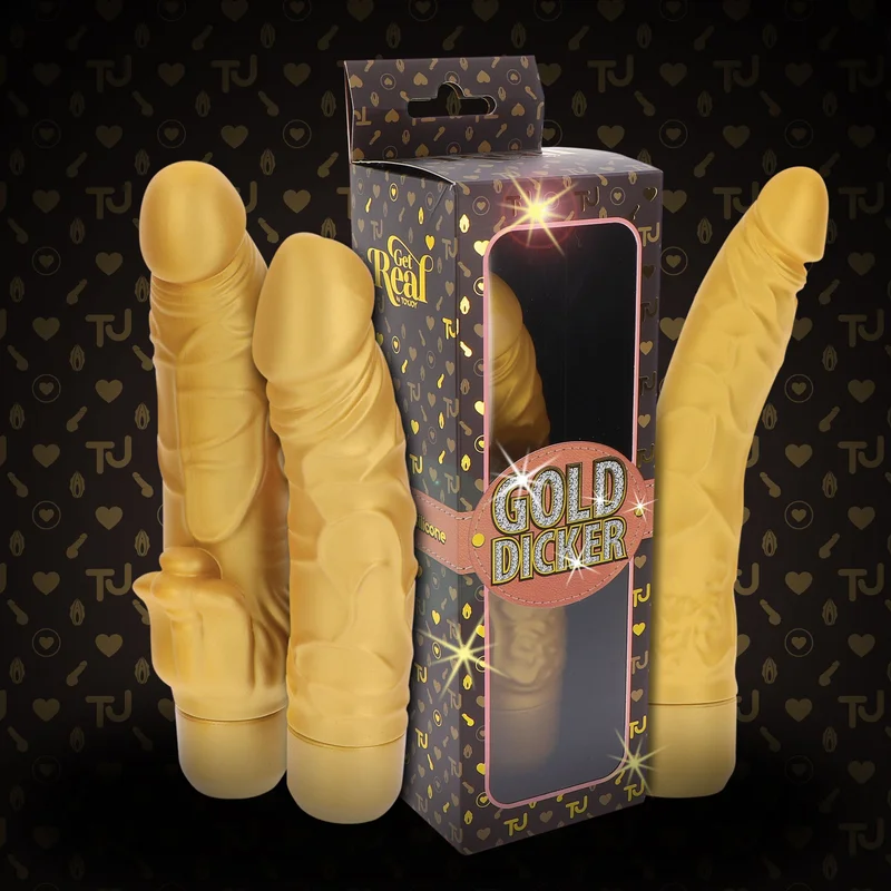 Get Real Gold Dicker Stim Vibrator - Вибратор 13х4.4 см (золотистый)