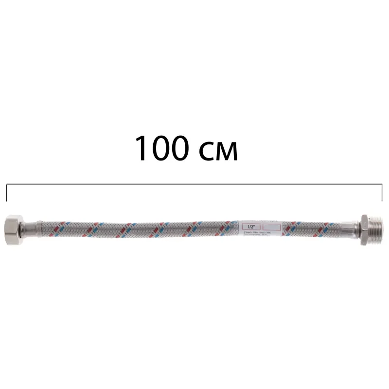 Гибкий шланг для подключения воды гайка 1/2'' - Штуцер 1/2'' (100 см) Zerix (ZX1565)