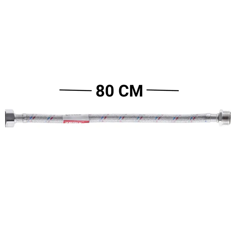 Гибкий шланг для подключения воды гайка 1/2'' - Штуцер 1/2'' (80 см) (силик. оболочка) Zerix (ZX302