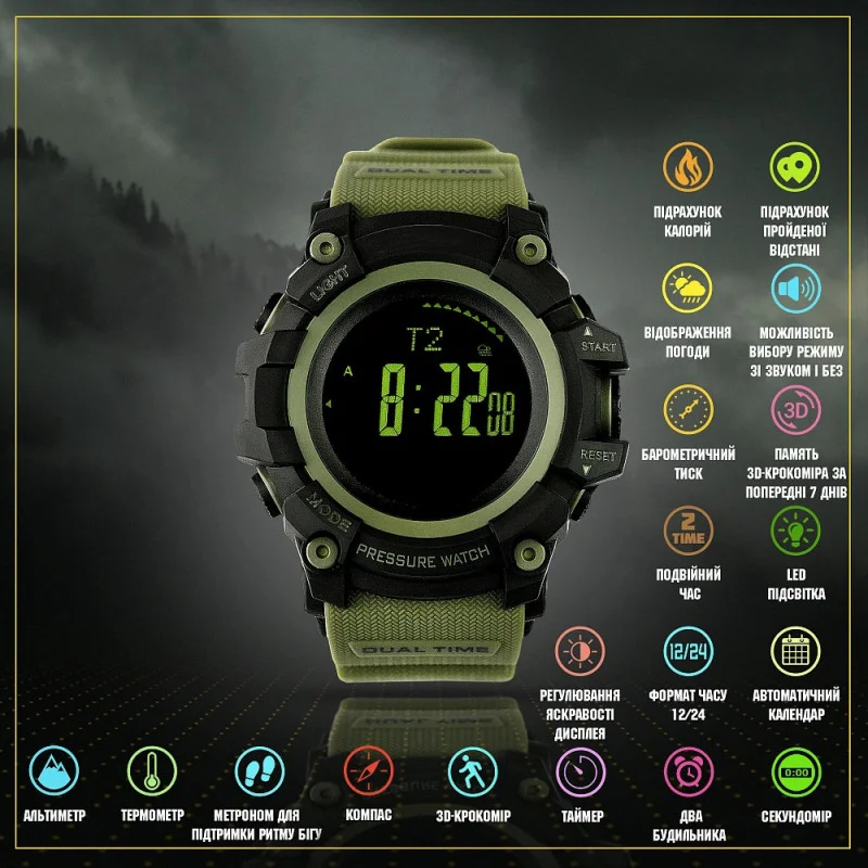 Годинник тактичний багатофункціональний Skmei 1358 Black/Olive