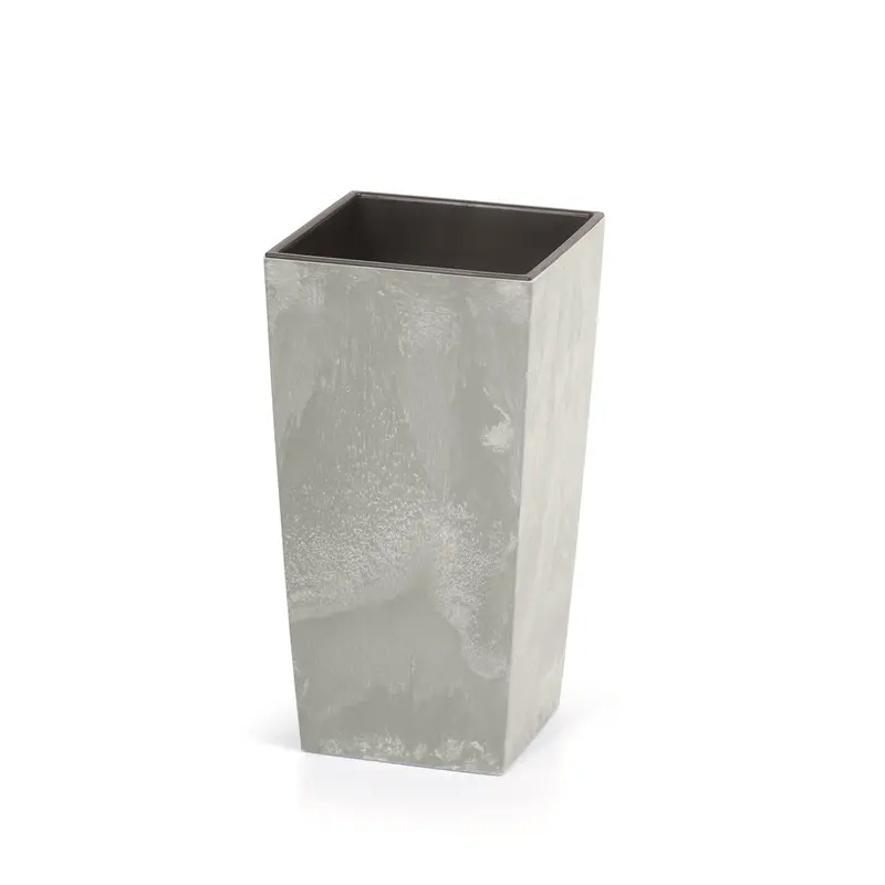 Горщик для рослин, в комплекті внутрішній чорний пластиковий горщик. Сучасний дизайн, який імітує бетон, розроблений для створення дизайну в стилі хайтек і лофт. Призначений як для зовнішнього, так внутрішнього використання.