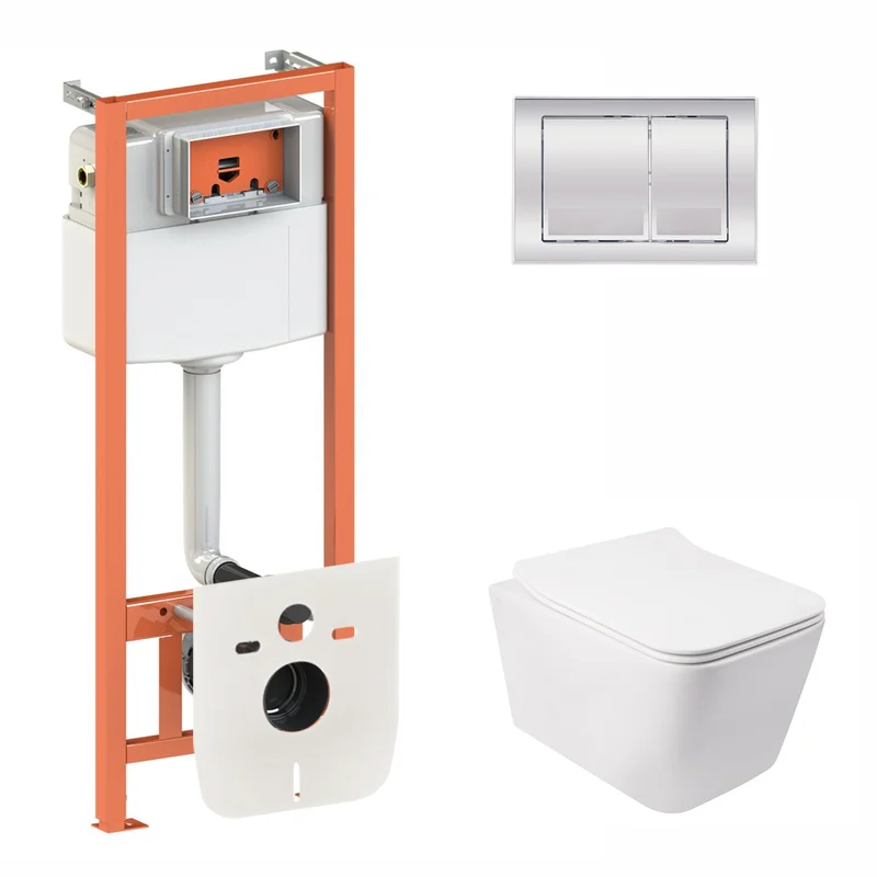 Готове рішення Qtap для ванної кімнати: підвісний унітаз Crow + комплект інсталяції Nest 4 в 1 (квадратна клавіша Chrome)