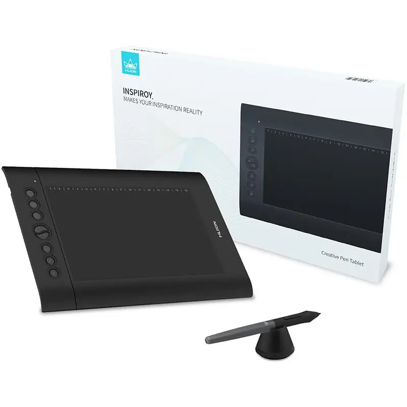 Комплектація:- графічний планшет- перо- mini USB кабель- підставка для пера- 10 змінних наконечників- інструкція- рукавичка Cura CR-01Бестселер просто став кращеH610 Pro був найбільш продаваним Huion з моменту його першого випуску, тепер ми представляємо вам версію V2, яка відновила багато функцій!Функція нахилуРучка з функцією нахилу підтримує ± 60 рівнів розпізнавання нахилу, як традиційні кисті. Ви можете насолоджуватися відчуттям реального письма і живопису.Перо більше не вимагає зарядкиПеро PW100 є стильною ручкою без батареї, завдяки технології EMR (електромагнітний резонанс) вам більше не потрібно турбуватися про те, що батарея сяде.Гладкі матеріалиНова ручка має силіконове захоплення, завдяки чому її зручно тримати в руці, а її наконечник дуже міцний. Для покриття планшета використаний матеріал вищої якості, який забезпечує гладку паперову текстуру, захищаючи при цьому від подряпин.Точність8192 рівнів чутливості пера, висота зчитування 10 мм, дозвіл 5080LPI, 233PPS швидкість відгуку - дозволяють вам відчувати як точність, так і контроль.Все у ваших руках8 клавіш швидкого доступу на лівій стороні планшета і 16 програмованих клавіш у верхній частині активної області, а також дві кнопки пера - все легко настроюються. Ви можете встановити настройки на свій розсуд.СумісністьH610 Pro V2 сумісний з Windows (Windows 7 або новіше) і MacOS (MacOS 10.11 або новіше), також сумісним з основним програмним забезпеченням, таким як Adobe Photoshop, Clip Studio, Krita і багато інших. Цей планшет хороший для малювання, редагування фото/відео, дизайну і багатьох інших напрямків цифрового мистецтва.