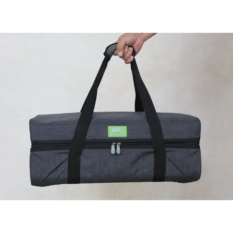Модель виготовлена з двох удароміцних типів металу: нержавіючої сталі та алюмінієвого сплаву. Матеріали характеризуються несприйнятливістю до корозії та агресивних середовищ, включаючи кислоти та солі, тому конструкція надовго зберігає первісний зовнішній вигляд. Для догляду за грилем достатньо очищати решітку та стінки виробу від кіптяви і жиру за допомогою губки та миючого засобу, після чого витирати насухо чистою ганчіркою. Після використання гриль компактно складається до розмірів 42 х 24.5 х 17.5 сантиметрів, що разом із вагою 4.1 кілограми дозволяє комфортно переносити конструкцію у сумці.