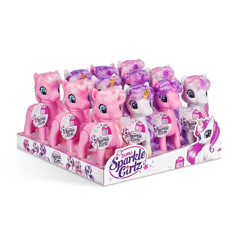 ZURU Sparkle Girlz Unicorn - ідеальний мініатюрний друг для ваших чарівних пригод.Розчісуй йому волосся і дбай про нього. Можна створити так багато зачісок - зробити хвостики або закрутити пучок. Він любить сонячне світло, веселку і все блискуче. Голова єдинорога рухається з боку в бік, щоб грати було ще веселіше. Почніть створювати свою казку з самими симпатичними крихітними єдинорогами.У колекції 4 маленьких єдинорога висотою 17 см.Підходить для діток від 3 років.