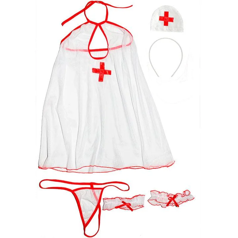Прискорене дихання і пульс - це вже привід викликати швидку допомогу. Медсестра виміряє тиск і пропише постільний режим. Головне, щоб після такого лікування не довелося викликати справжнього лікаря.Прозорий короткий пеньюар на зав'язках через шию, по центру грудей виріз "крапля" і атласний хрестик!Дві гофровані підв'язки з бантиками.Ободок на голову зі знімним атласним півколом і червоним хрестиком.Матеріал: 100% поліамід.Підходить на розмір: XS/SШирина (напівобхват) пеньюара 40 см. (тягнеться зверху до≈58 см, знизу до≈80см)Довжина пеньюара (від зав'язок) 54см (виріз крапля 15см)Ширина (напівобхват) пов'язок 17см (тягнеться до≈25см), висота 2см.Ширина (напівобхват) гумки на трусиках 27см. (тягнеться до≈42см).Розмір трикутника трусиків 13х11х13см.Тканинна частина головного убору 12х9см.