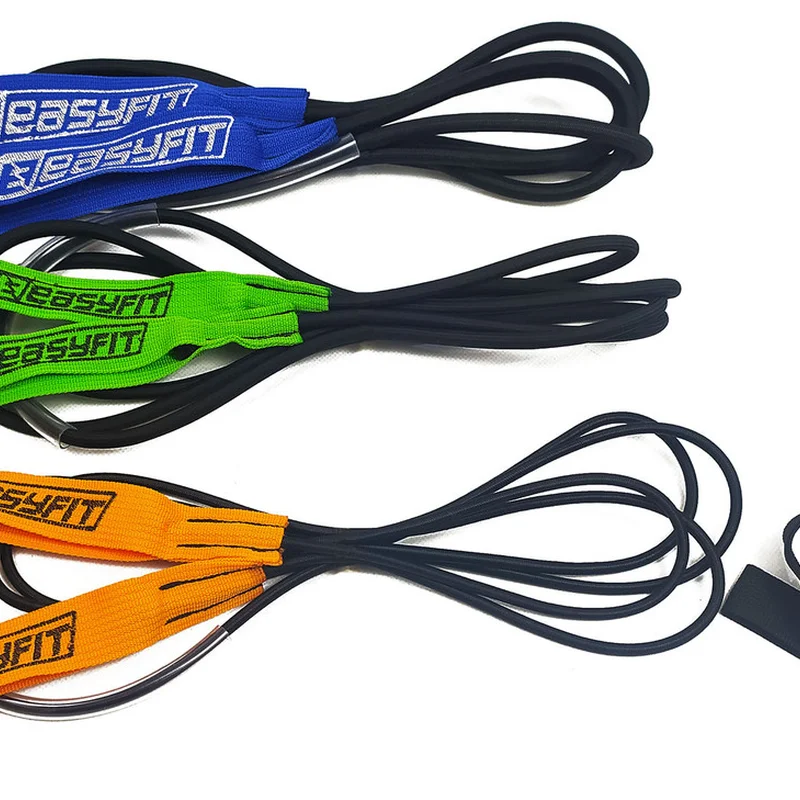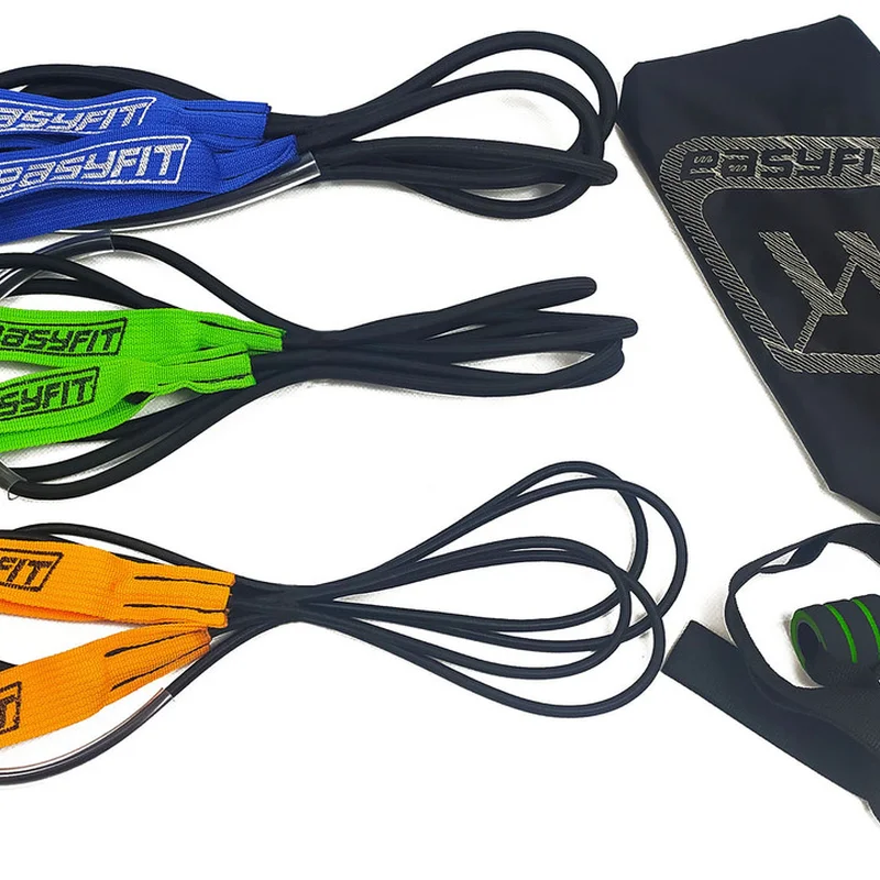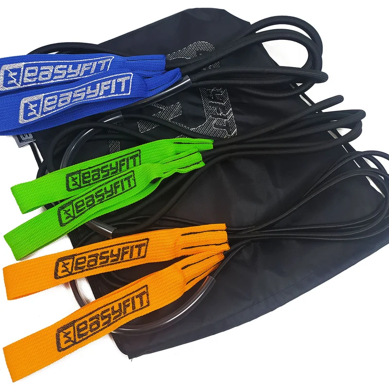 Переваги еспандерів EasyFit:ДовговічністьВеликий комплекс вправРегульована довжинаПрогресивна навантаженняКомплектаціяДовговічність. Склад гумки EasyFit - латекс у виді джгутів дрібного перетину. Прожилки на відміну від цільної гумової петлі краще переносять будь-які навантаження і набагато менше рвуться. При пошкодженні навіть одного джгута еспандер залишається цілісним і не втрачає своїх властивостей. Додатковим захистом є оплетка з міцної поліефірної нитки, яка захищає еспандер від зовнішнього впливу.Великий комплекс вправ. На відміну від закільцьованої гумки з допомогою такого тренажера можна виконувати набагато більше різних вправ. Еспандер EasyFit дає можливість одночасно і незалежно виконувати рухи кожною рукою або ногою). З допомогою однієї гумки такого конструктиву можна, наприклад, виконувати розведення, імітувати роботу з гантелями (на горизонтальній лаві або виставленої під кутом), всілякі жими і верхні тяги, вправи з гирею, почергове піднімання рук на біцепс і інші.... Фактично комплекс вправ обмежується тільки фантазією користувача.Регульована довжина. Повна довжина еспандера EasyFit від ручки до ручки - 3 м. Ручки вільно переміщаються по резинці, тому еспандер можна вкоротити, зав'язавши вузол на необхідній відстані від центру. Щільний нейлон, з якого виконана оплетка, не дає вузла розв'язатися, але і в теж час не затягується до упору (вузол завжди легко розплутати).Прогресивна навантаження. Аналогічно гумовим петлям, опір еспандерів EasyFit збільшується у міру розтягування. В результаті тренування з еспандером дає більший м'язовий відгук у верхній точці амплітуди (в момент повного м'язового скорочення) у порівнянні з вільними вагами. Крім цього в межах одного підходу для деяких вправ можна варіювати навантаження в результаті збільшення розтягування еспандера. Це можна зробити, наприклад, підійшовши ближче або далі від точки кріплення еспандера при виконанні розводки.Комплектація. В набір із 3 гумок-еспандерів EasyFit додатково входить одне дверне кріплення, карабін та сумка-чохол для комфортного транспортування. Дверне кріплення дає можливість забезпечити підвіс в домашніх умовах, закріпляти еспандер в незручних місцях на вулиці, фіксувати на конкретному місці при заняттях на майданчику, збільшити довжину тренажера. Матеріал дверного кріплення не ковзкий та дозволяє підвісити петлю на необхідному рівні у дверях чи на стійці турніка.За допомогою карабіна розімкнутий еспандер можна закільцювати та використовувати як звичайну гуму для підтягувань на турніку чи для віджимань на брусах. Характеристики:Довжина еспандера: 3 мТовщина джгута: 6, 8, 10 ммОпір еспандерів у кільці: 4-20 кг, 10-40 кг, 16-60 кгРазмери карабіна: 6х60 ммДовжина ручок: 30 смКолір ручок: Помаранчевий, Салатовий, СинійДовжина дверного кріплення: 60 см (прошитого з кроком 12 см)*Опір еспандерів EasyFit наведено в складеному удвоє стані з метою можливості зіставлення з гумовими петлями.Матеріали:Джгут - багатожильний латекс в обплетенні із поліефірної ниткиРучки та дверне кріплення - міцна нейлонова стрічкаКарабін - стальФіксатор дверного кріплення - пластик з пом'якшувальною накладкою з неопрену Товари EasyFit - це ефективність і довговічність, зручність і сучасний дизайн, увага до деталей і побажань користувачів. Всі вироби перед надходженням в продаж протягом від 