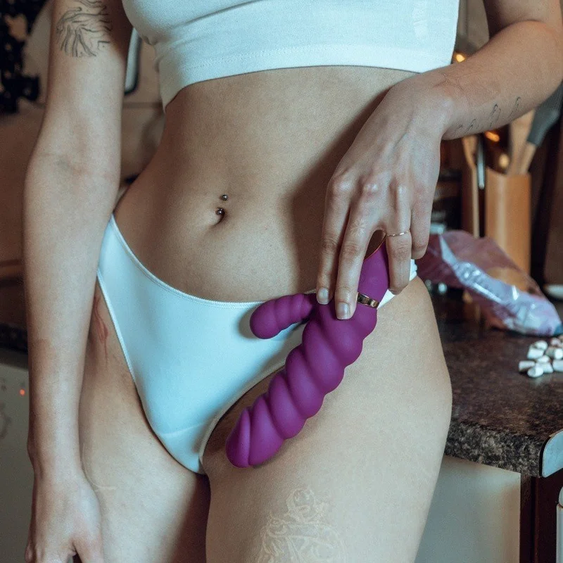 Gvibe Gcandy - Невероятный витой вибратор с клиторальным стимулятором, 13х4.5 см (фиолетовый)