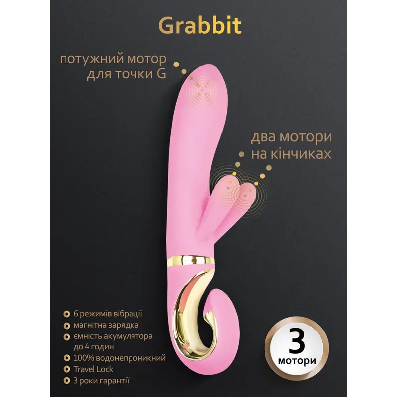 Gvibe Grabbit - Вибратор для клитора и точки G с тремя моторами, 22 см (розовый)