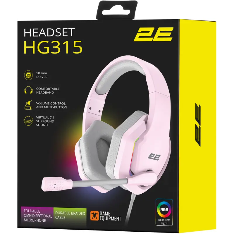 Гарнітура 2E Gaming HG315 RGB USB 7.1 Pink (2E-HG315PK-7.1)