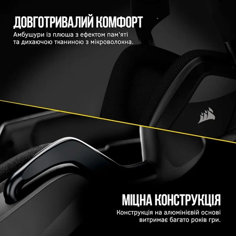 Навушники Corsair VOID ELITE SURROUND є відмінним вибором для геймерів і аудіофілів, які шукають якісний звук, комфорт та багатофункціональність в одному пристрої. Вони дозволяють занурюватися у світ гри або аудіо з неперевершеною якістю звуку та зручністю у використанні. Навушники Corsair VOID ELITE SURROUND, Black мають кілька переваг: Навушники мають високоякісні неодимові динаміки діаметром 50 мм, спеціально налаштовані для точного відтворення об'ємного звуку 7.1. Вони здатні передати широкий діапазон частот від 20 до 30 000 Гц, відтворюючи найтонші шурхоти кроків і гучні розгроми вибухів. Corsair VOID ELITE SURROUND забезпечують довготривалий комфорт під час ігрових сеансів завдяки амбушурам з оксамитового піноматеріалу та повітропроникній сітчастій тканині з мікроволокна. Ці амбушури створюють м'яку посадку та вентиляцію, що допомагає уникнути перегріву та пітливості при тривалому використанні. Навушники Corsair VOID ELITE SURROUND можна зручно під'єднати до різних платформ, включаючи ПК, Xbox One, PS4, Switch і мобільні пристрої. Для створення об'ємного звуку 7.1 на ПК, комплект постачання включає USB-адаптер, який дозволяє під'єднати навушники та насолоджуватись ефектом просторового звуку 7.1. Ця ігрова гарнітура має міцну конструкцію з алюмінієвими вилками, що забезпечують довговічність протягом багатьох років гри. Це гарантує надійність та стійкість навушників під час щоденного використання, дозволяючи вам насолоджуватись ними протягом тривалого часу. Corsair VOID ELITE SURROUND мають зручні регулятори гучності та відключення звуку прямо на навушниках. Це дозволяє швидко налаштовувати їх без відволікання від гри. Вам достатньо натиснути кнопки на навушнику, щоб зручно контролювати гучність або вимикати звук. Це забезпечує швидкість і зручність налаштувань під час гри, дозволяючи вам залишатись зосередженими на грі. Навушники мають оптимізований мікрофон, що вловлює ваш голос з винятковою чіткістю. Він забезпечує якісне звучання під час гри або голосових розмов з іншими користувачами. Функція відкидного вимкнення звуку дозволяє швидко вимкнути мікрофон, коли вам не потрібно говорити. Ігрова гарнітура працює з програмним забезпеченням CORSAIR iCUE, що дозволяє точно налаштовувати їхню роботу. За допомогою iCUE ви можете використовувати попередньо встановлені аудіопрофілі, налаштовувати індивідуальні параметри еквалайзера, насолоджуватись об'ємним звуком 7.1 і контролювати побічні тони. Завдяки програмному забезпеченню CORSAIR iCUE, ви можете налаштувати підсвічування RGB на кожній чашці навушників. Вам доступна практично необмежена кількість кольорів та динамічних ефектів для створення унікальної атмосфери.