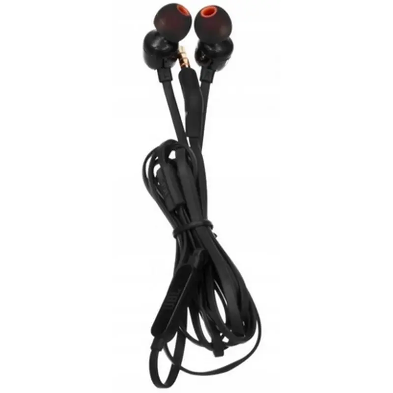 Особливості: Вбудований мікрофон, який дозволяє використовувати пристрій як гарнітуру Навушники підключаються по роз'єму jack 3.5 мм Легковажна конструкція Такий кабель не сплутується під час перенесення або експлуатації Усередині міцного корпусу вушних вкладишів знаходиться пара 9-мм динаміків, здатних видавати потужні баси і відтворювати звук JBL Pure Bass, який можна почути в концертних залах, на спортивних аренах і в звукозаписних студіях по всьому світу. Крім того, однокнопковий пульт управління на плоскому кабелі, що не сплутується, дозволяє керувати відтворенням музики, а також “на ходу” відповідати на дзвінки за допомогою вбудованого мікрофона. Все це робить модель JBL T110 зручним компаньйоном для повсякденного використання на роботі, вдома та в дорозі. Технологія Pure Bass була розроблена інженерами JBL для того, щоб наголосити на енергійності басових партій, які характерні для сучасної музики: під час відтворення низькі частоти акцентуються.