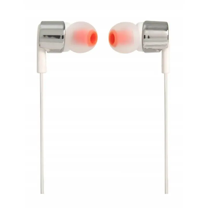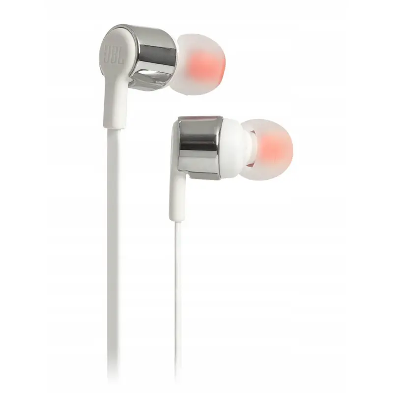 Технічні характеристики Динаміки: 8.7 мм Частотна характеристика: 20 Гц – 20 кГц Чутливість динаміка при 1 кГц/1 мВт: 96 дБ Вхідний опір: 16 Ом Аудіороз'єм: 3.5 мм Довжина кабелю навушників: 121 см Вага: 80 г Функції та переваги Технологія JBL Pure Bass Однокнопковий пульт керування з мікрофоном Плоский кабель із захистом від заплутування Надійний плоский кабель, який ніколи не доведеться розплутувати. Корпус з металевим оздобленням Пропонуємо внутрішньоканальні навушники JBL T210. Вони легкі, зручні та компактні. Усередині корпусу вушних вкладишів з металевим оздобленням знаходиться пара 8,7-мм динаміків, здатних видавати потужні баси і відтворювати потужний звук JBL Pure Bass, який можна почути в концертних залах, на спортивних аренах і в звукозаписних студіях по всьому світу. Керуйте відтворенням за допомогою зручного однокнопкового пульта керування. Надійшов вхідний виклик? Дайте відповідь на нього, використовуючи вбудований мікрофон. Крім того, однокнопковий пульт дозволяє керувати відтворенням музики, а також відповідати на дзвінки за допомогою вбудованого мікрофона. Все це робить модель T210 зручним партнером для повсякденного використання на роботі, вдома та в дорозі. Вже 70 років компанія JBL проектує високоякісні потужні звукові системи для найбільших концертних майданчиків у всьому світі. Ці навушники відтворюють фірмове звучання JBL із глибокими та сильними басами. Комплектація Навушники JBL Tune 210 3 розміри вушних вкладишів (S, M, L) М'який футляр для перенесення