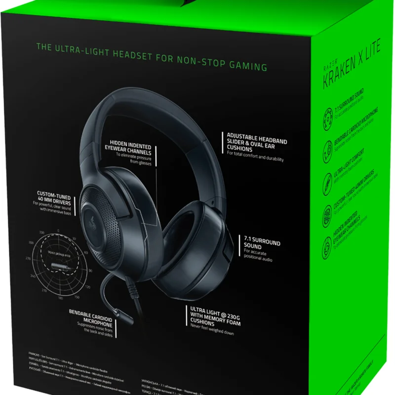 Модель Kraken X Lite оснащена об’ємним 7.1 звуком для точного позиціонування в будь-якому ігровому середовищі від вибухових всебічних війн, до прихованих таємних операцій. Доступно тільки на Windows 10 64-бітУльтра легкістьРозроблені, щоб бути невагомими - всього 230 м. Чудовий звук поєднується з малою вагою гарнітури, що позбавить вас від дискомфорту навіть під час найтриваліших баталій.Овальні амбушюри і регулювання висоти оголов’яЗа рахунок регульованої висоти оголов’я ви можете ідеально налаштувати гарнітуру під себе, а м’яких овальних амбушюри будуть повністю облягати ваші вуха.