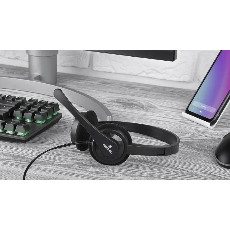 Основні особливості: Якісний звук REAL-EL GD-011MV забезпечують високоякісний звук, який робить їх ідеальним вибором для прослуховування музики, перегляду фільмів чи спілкування під час відеоконференцій. Зручність та комфорт Ці навушники мають зручну конструкцію, м'які амбушури та регульовану оголов'я, забезпечуючи комфортне носіння протягом тривалого часу. Інтегрований мікрофон Вбудований мікрофон дозволяє легко спілкуватися в інтернет-телефонії, відео-конференціях або під час ігор, забезпечуючи чітке звучання вашого голосу. Універсальна сумісність REAL-EL GD-011MV сумісні з різними пристроями, включаючи ПК, ноутбуки, смартфони та планшети, що робить їх універсальним рішенням для різних сценаріїв використання. Багатофункціональність Ці навушники підходять не тільки для розваг, але і для професійних цілей, таких як відеоконференції, навчання іноземних мов або розпізнавання мовлення. Стереонавушники з мікрофоном REAL-EL GD-011MV розроблені для широкого спектру використання, включаючи роботу зі звуковими картами ПК та сумісними системами. Ці навушники також ідеально підходять для інтернет-телефонії, відеоконференцій, мультимедійних програм, ігор, навчання іноземних мов та розпізнавання мови.