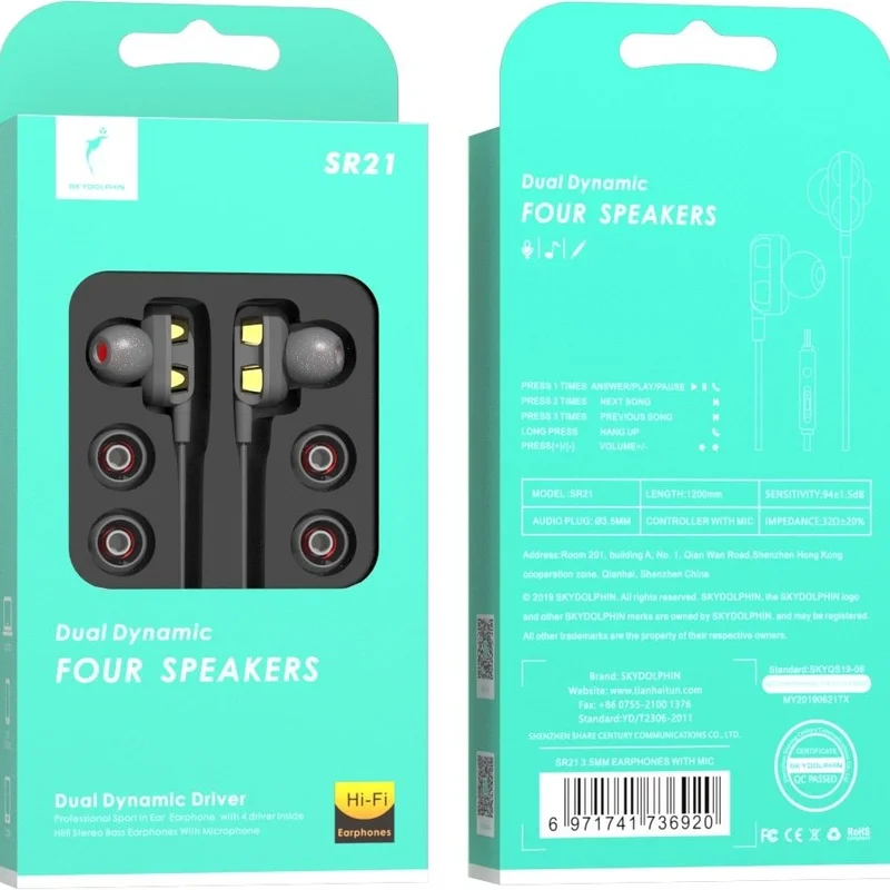 Гарнітура SkyDolphin SR21 Four Speakers with mic Black (HF-000483)
