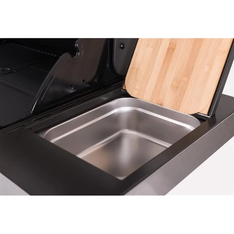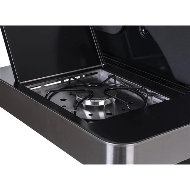 4 газові пальники з нержавіючої сталі марки 304 (4х3.5 кВт), індикатор температури для управління грилем, додатковий бічний пальник (1х3 кВт)