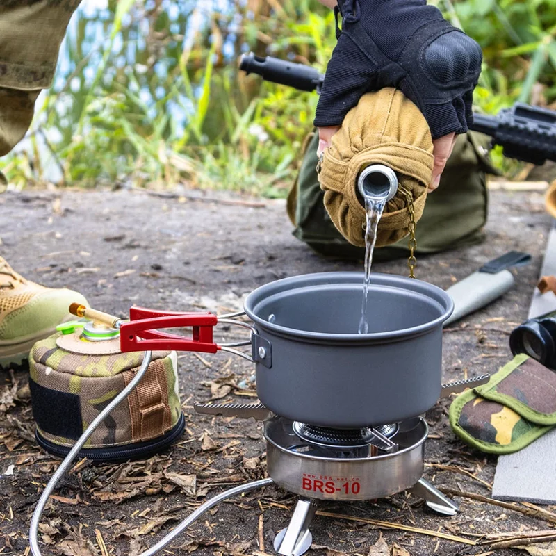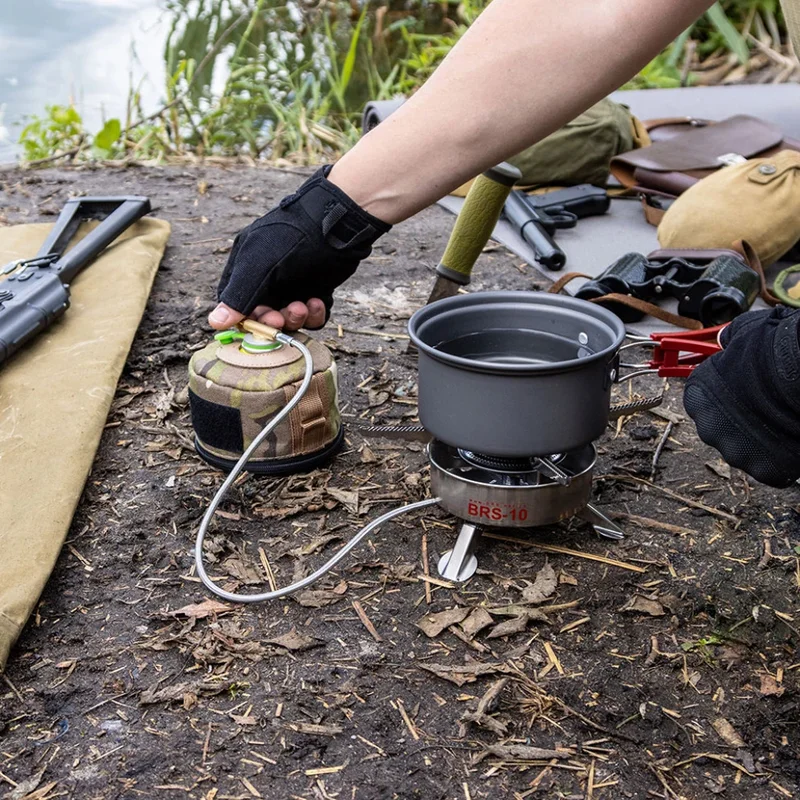 BRS-10 стане вам у нагоді під час кемпінгу, піших прогулянок, альпінізму, пікніка та інших видів активного відпочинку. У складі виробу такі матеріали, як надміцний сплав магнію і алюмінію, а також добре загартована нержавіюча сталь. Працює на паливі – бутаново-пропанового суміші. Витрати газу складають 163 г/год.