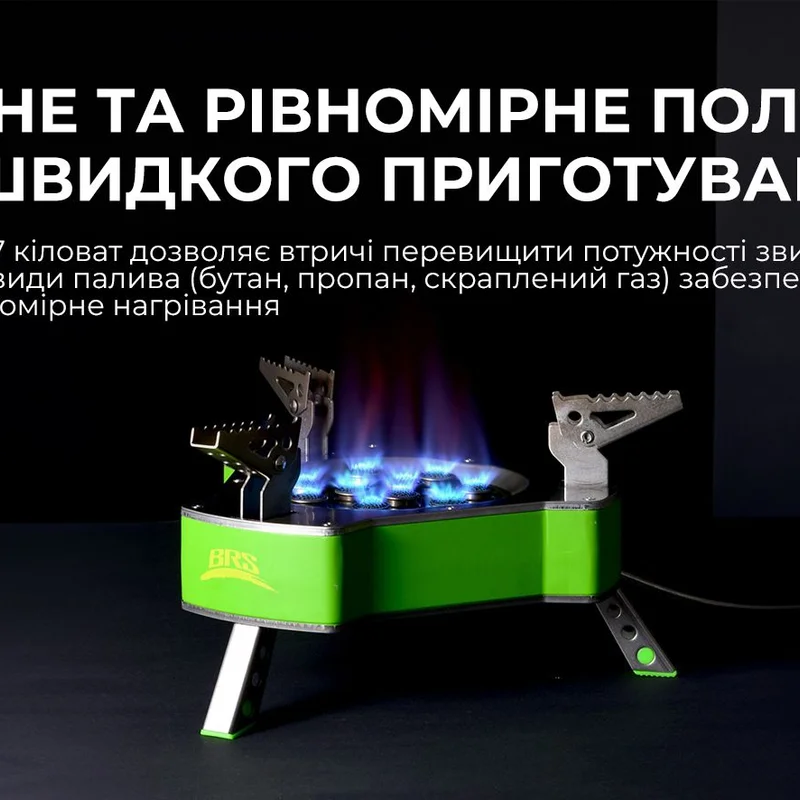 Газовий пальник BRS-80 служить для полегшення процесу приготування їжі за умов походу. Це оптимальне рішення для кулінарії на свіжому повітрі. Десять зручних конфорок. Сильна вогнева міць та рівномірне нагрівання. Втричі перевищує потужності звичайні побутові газові плити.