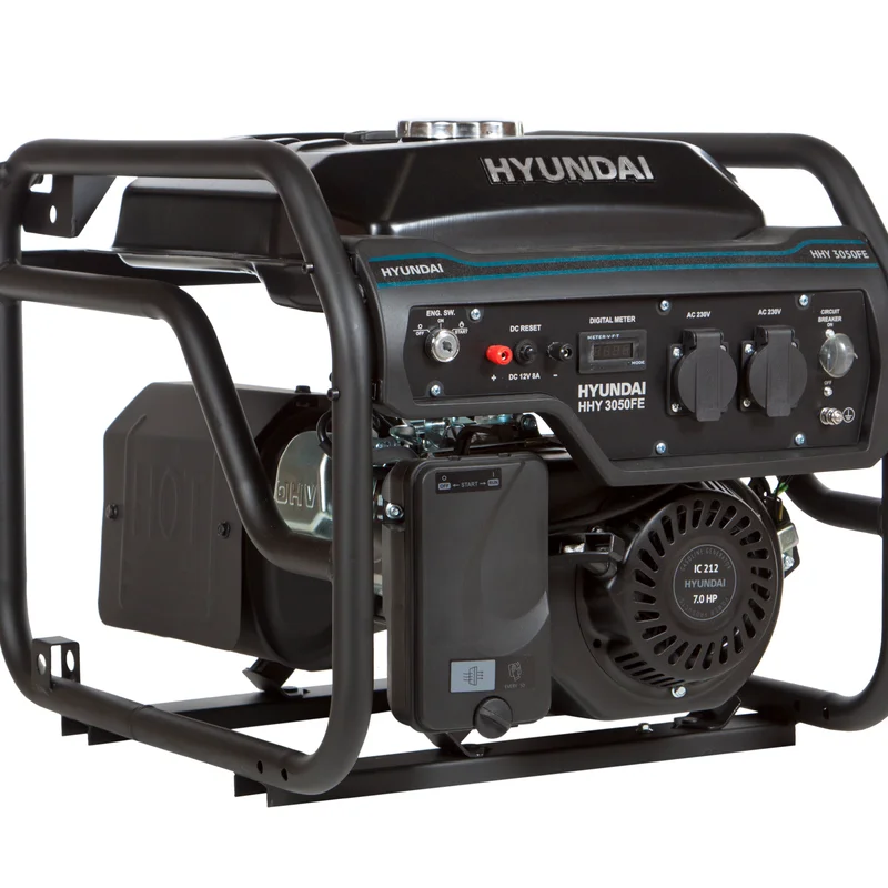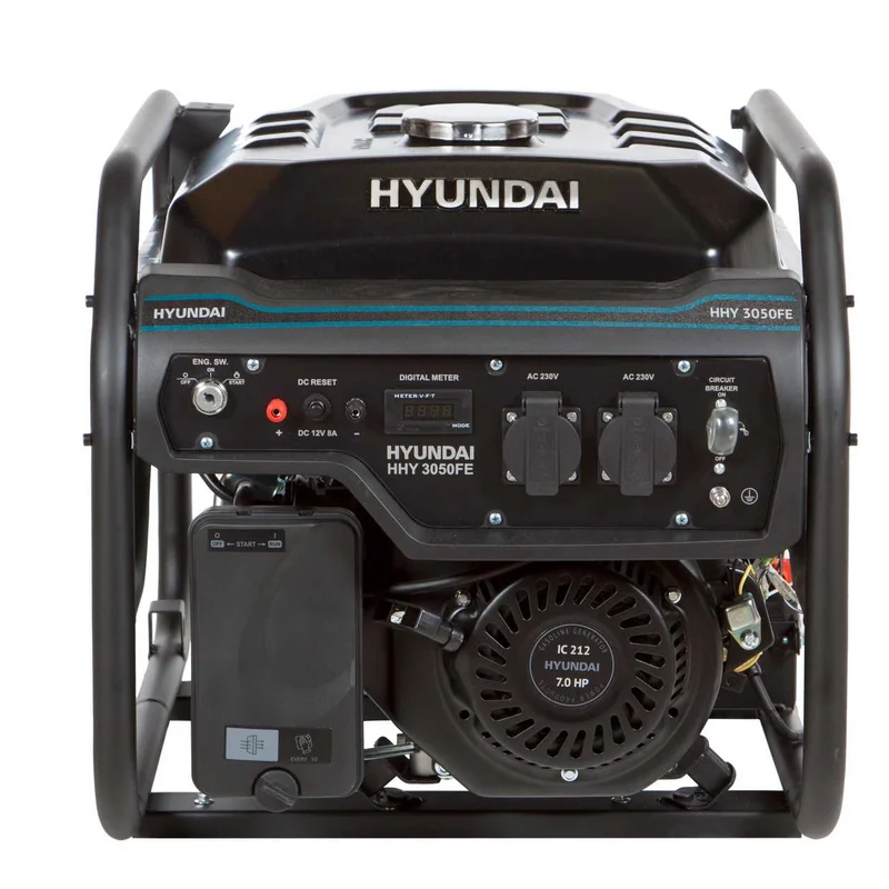 Генератор бензиновий HHY 3050FE від Hyundai є оновленою версією генератора HHY 3050F. Він також є портативним генератором потужністю 2,8 кВт, що працює на бензині. Основні відмінності генератора HHY 3050FE від попередньої моделі полягають в тому, що він оснащений електричним стартером та може працювати з використанням дистанційного пульта. Це робить його більш зручним у використанні, особливо для старших людей або тих, хто має обмежену фізичну активність. Цей генератор також має дві стандартні 220 В вихідні розетки та один 12 В вихід для зарядки акумуляторів. Він оснащений автоматичним вимикачем, який вимикає генератор у разі перевищення потужності або низького рівня масла. HHY 3050FE має компактну та легку конструкцію, що робить його ідеальним для використання на відкритому повітрі, в кемпінгах, на будівництві, або як резервне джерело енергії вдома під час аварійних ситуацій. Ємність паливного бака складає 15 літрів, що забезпечує тривалий час роботи генератора без необхідності додаткового заправлення. Основні технічні характеристики генератора бензинового HHY 3050FE: Потужність: 2,8 кВт Об'єм двигуна: 196 куб. см Тип двигуна: 4-тактний, з повітряним охолодженням Ємність паливного бака: 15 літрів Вихідна напруга: 220 В / 50 Гц, 12 В Захист від перевантаження та низького рівня масла Електричний стартер та можливість використовувати дистанційний пульт Рівень шуму: 65 дБ на відстані 7 метрів Вага: 48 кг Розміри (Д х Ш х В): 605 x 435 x 450 мм HHY 3050FE є надійним і ефективним джерелом електроенергії, який може бути використаний у багатьох різних ситуаціях. Завдяки своїй легкій і компактній конструкції, він може бути легко перенесений з місця на місце, що робить його ідеальним для використання в кемпінгах, на будівництві, під час відпочинку на природі, або як резервне джерело енергії вдома. Фірмовий двигун зі збільшеним моторесурсом: Збільшені розміри впускного та випускного клапанів для швидкого заповнення та вивільнення камери згоряння, які полегшують роботу двигуна, що в свою чергу позитивно впливає на моторесурс; Унікальна конструкція клапанів та головки двигуна унеможливлює випадкове випадіння клапана, що в свою чергу могло б стати причиною руйнування двигуна (в разі випадіння клапана можуть бути пошкоджені такі запчастини як шатун, поршень, блок двигуна, головка блока, та ін.); Зміцнені та збільшені коромисла клапанів також гарантують надійну та довговічну роботу двигуна; Все це забезпечує подовжений моторесурс двигунів даної серії, у тому числі за рахунок зменшення його робочої температури та захищає від перегріву двигуна. Система запуску EASY START - використовується автоматично для полегшеного запуску генератора. Альтернатор - усі генератори Hyundai комплектуються тільки синхронними альтернаторами з мідною обмоткою. Обмотка з міді не перегрівається, витримує більші навантаження у порівнянні з іншими матеріалами, володіє відмінною струмовіддачею. Виготовляються на автоматичній лінії, що унеможливлює присутність дефектів пов’язаних з людським фактором, також застосовано поліпшене укладання проводів з додатковою фіксацією обмоток. AVR (автоматичний регулятор напруги) - виготовлена серійно, встановлені конденсатори підвищеної ємності та герметично заповнена компаундом для захисту від зовнішнього середовища. Фірмова, посилена сталева рама 32 мм - генератори 50-серії н